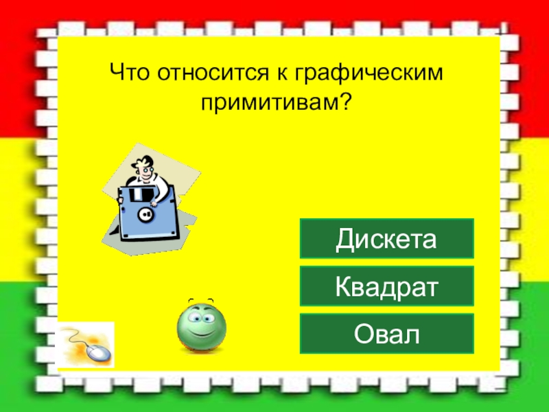 ОвалКвадратДискета Что относится к графическим примитивам?