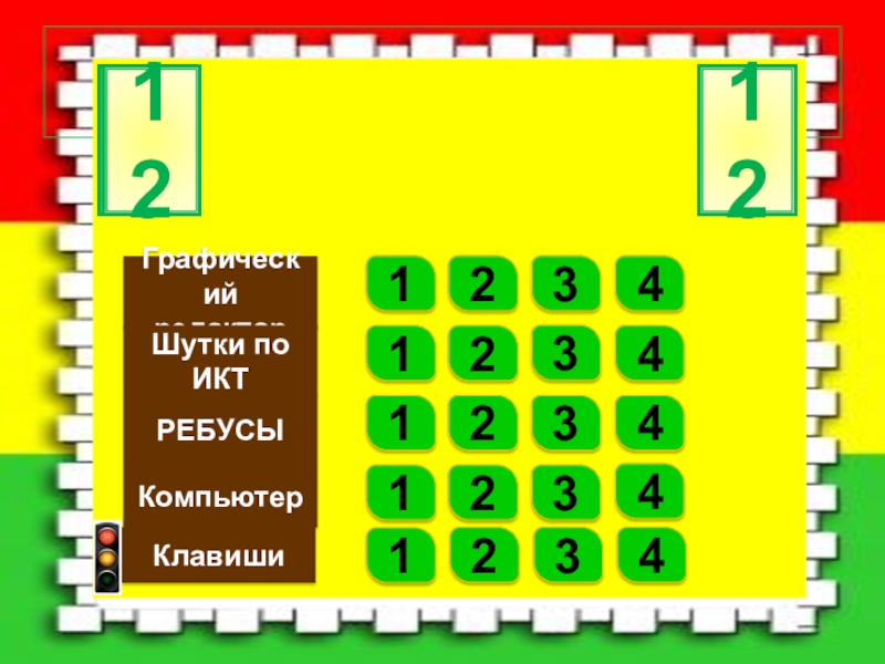 Графический редакторШутки по ИКТ РЕБУСЫКомпьютер1234121234341234123401234567891011120123456789101112Клавиши