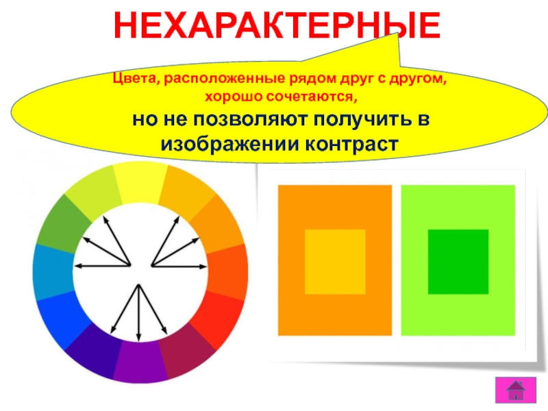 Например, контраст цветов второго порядка оранжевый, зелёный, фиолетовый будет гораздо слабее