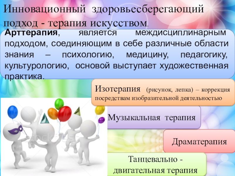 Слайд 5Инновационный здоровьесберегающий подход - терапия искусством.