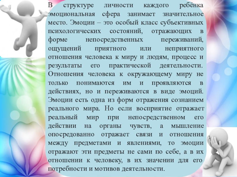 Слайд 2В структуре личности каждого ребёнка эмоциональная сфера занимает значительное место. Эмоции