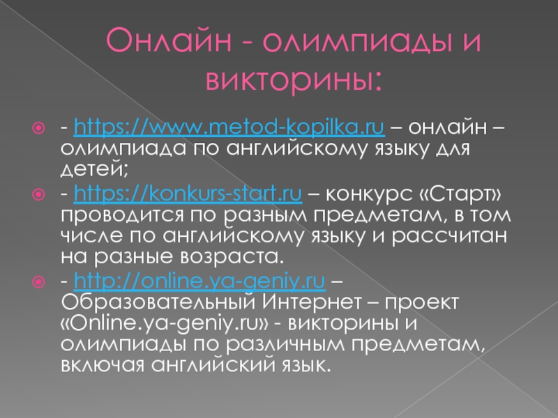 Это сайт презентаций, где можно хранить и обмениваться своими презентациями, докладами, проектами, шаблонами в формате PowerPoint с другими пользователями. Мы помогаем школьникам, студентам, учителям, преподавателям хранить и обмениваться учебными материалами.