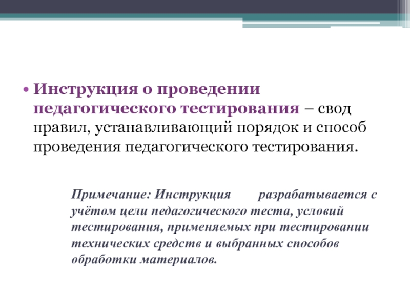 Инструкция о проведении педагогического тестирования – свод правил, устанавливающий порядок и способ проведения педагогического тестирования.