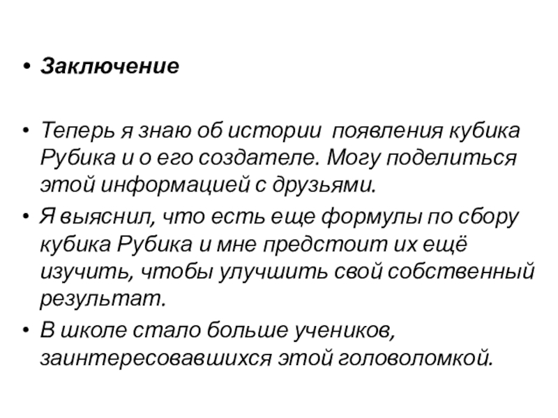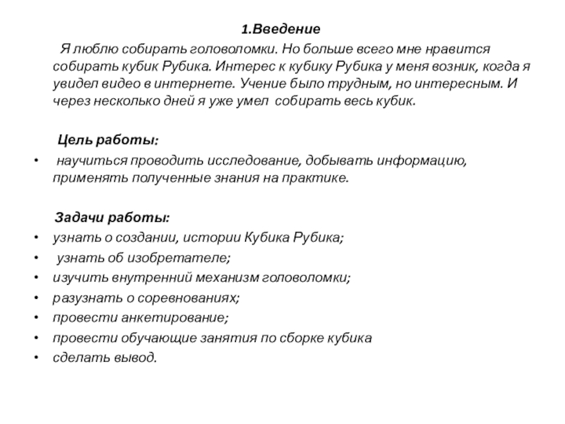 всего мне нравится собирать кубик Рубика. Интерес к кубику Рубика у меня возник, когда я увидел видео в интернете. Учение было трудным, но интересным. И через несколько дней я уже умел собирать весь кубик.