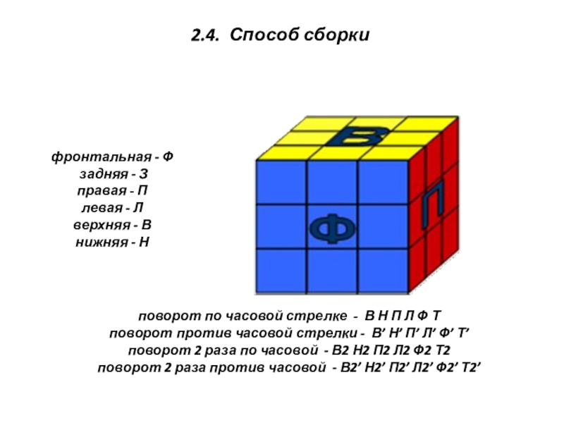 поворот 2 раза против часовой - В2’ Н2’ П2’ Л2’ Ф2’ Т2’