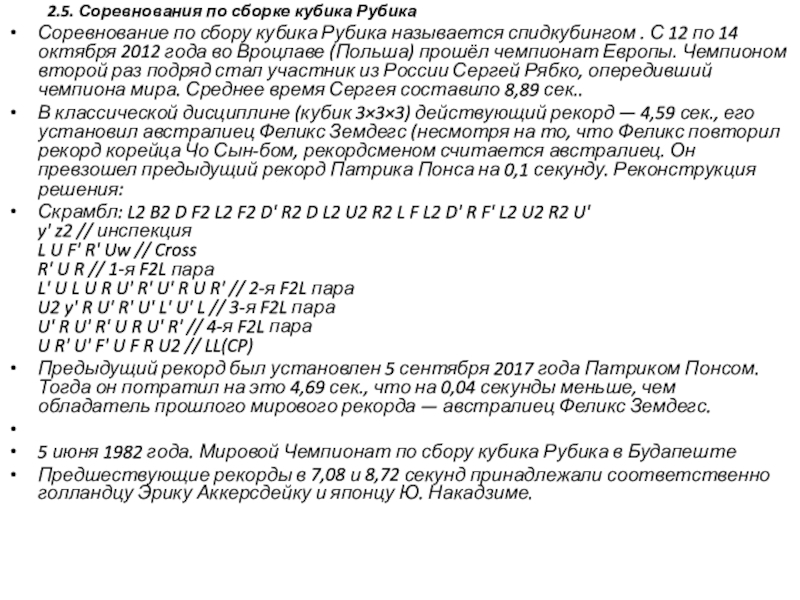 Слайд 122.5. Соревнования по сборке кубика Рубика