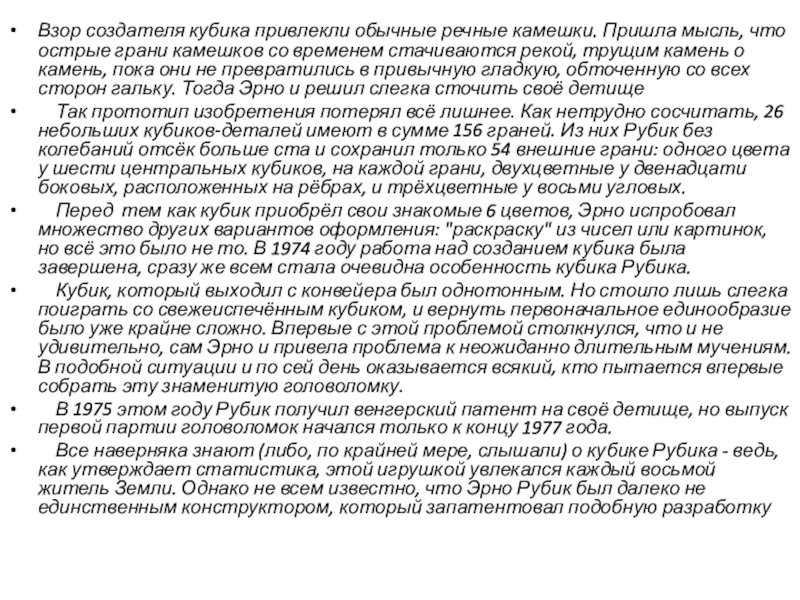 Слайд 8Взор создателя кубика привлекли обычные речные камешки. Пришла мысль, что острые