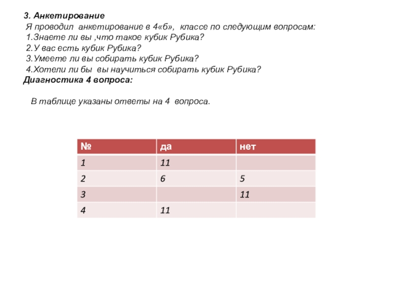 3.Из опрошенных учеников, никто не умеет собирать кубик Рубика.
