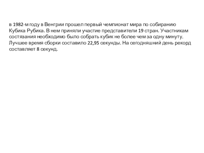 Слайд 7в 1982-м году в Венгрии прошел первый чемпионат мира по собиранию