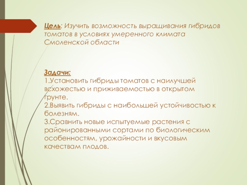 1.Установить гибриды томатов с наилучшей всхожестью и приживаемостью в открытом грунте.
