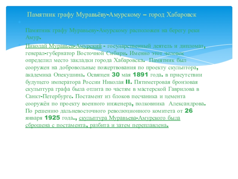 Памятник графу Муравьёву-Амурскому – город Хабаровск