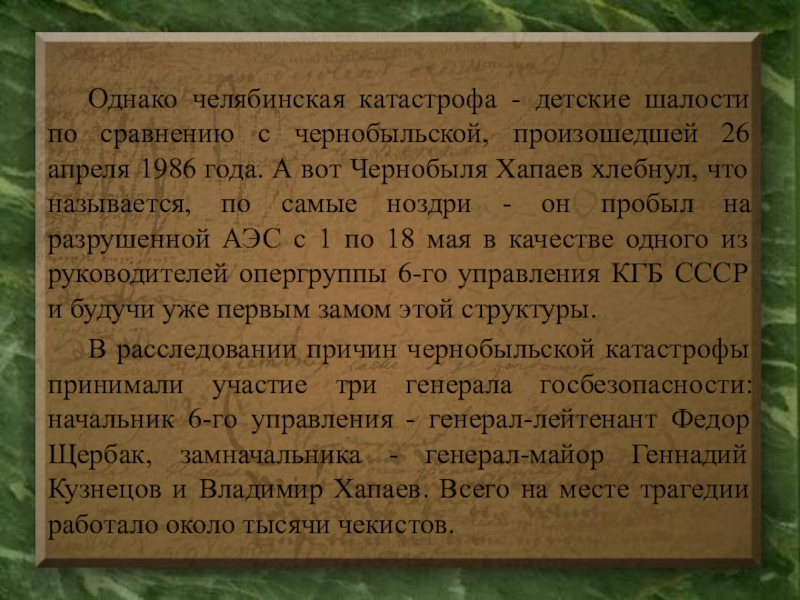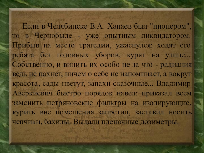Если в Челябинске В.А. Хапаев был "пионером", то в Чернобыле -
