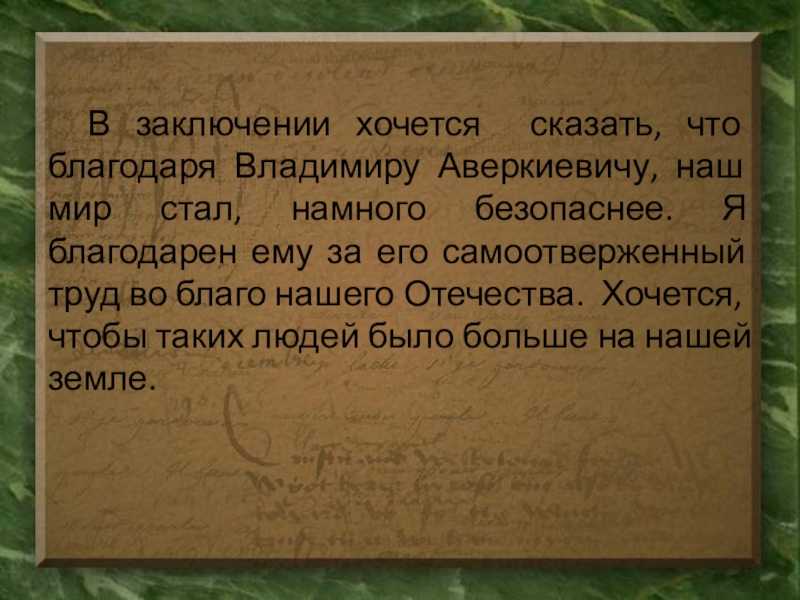 В заключении хочется сказать, что благодаря Владимиру Аверкиевичу, наш мир стал,