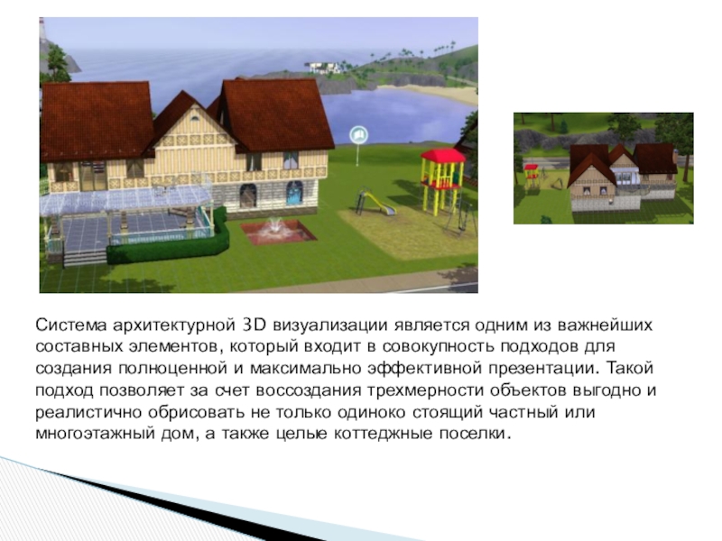 Слайд 9Система архитектурной 3D визуализации является одним из важнейших составных элементов, который
