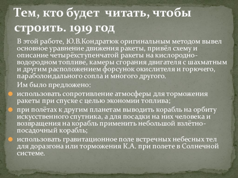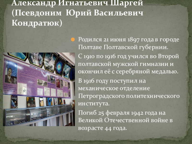 В 1927 году, Ю.В.Кондратюк переехал в Сибирь и устроился на работу в Новосибирске на предприятие «Хлебопродукт».