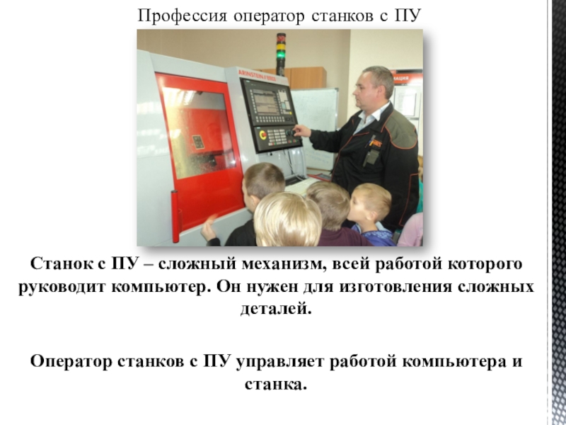 Станок с ПУ – сложный механизм, всей работой которого руководит компьютер. Он нужен для изготовления сложных деталей.