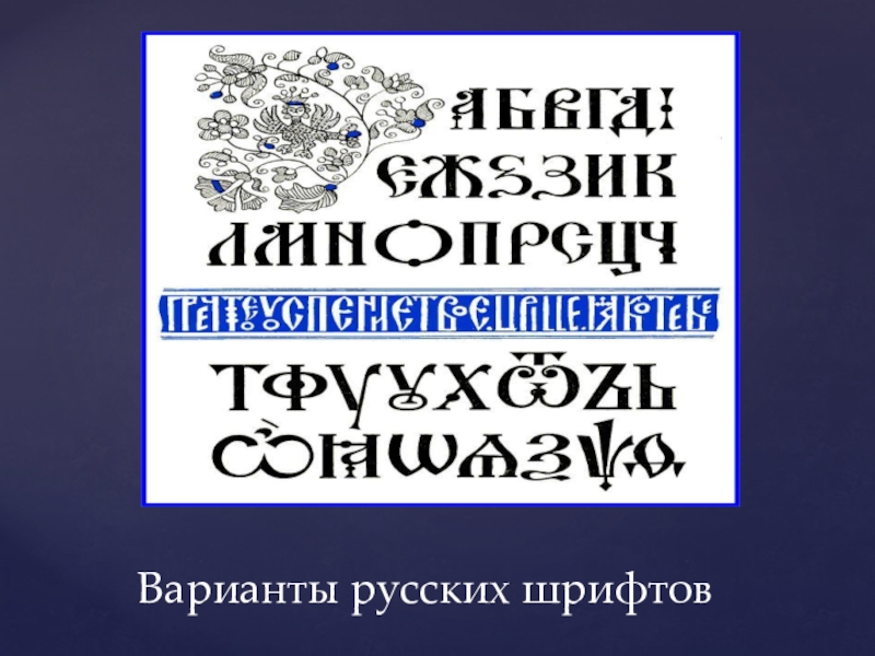 долго остаётся господствующим и цельным. В начале XVIII века антиква становится контрастнее и плотнее. Наиболее характерные формы классической антиквы сложились во второй половине XVIII --- начале XIX в.в. В шрифтах Дидо ( Франция) и Бодони ( Италия).