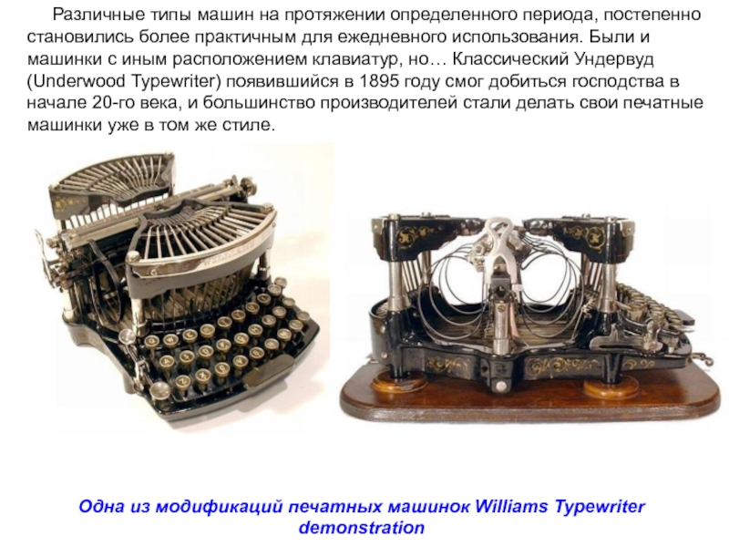 Одна из модификаций печатных машинок Williams Typewriter demonstration