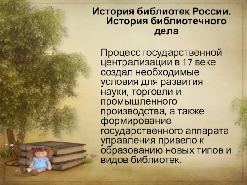 создал необходимые условия для развития науки, торговли и промышленного производства, а также формирование государственного аппарата управления привело к образованию новых типов и видов библиотек.