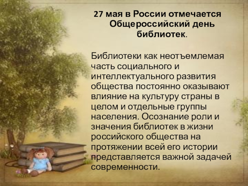Слайд 227 мая в России отмечается Общероссийский день библиотек.