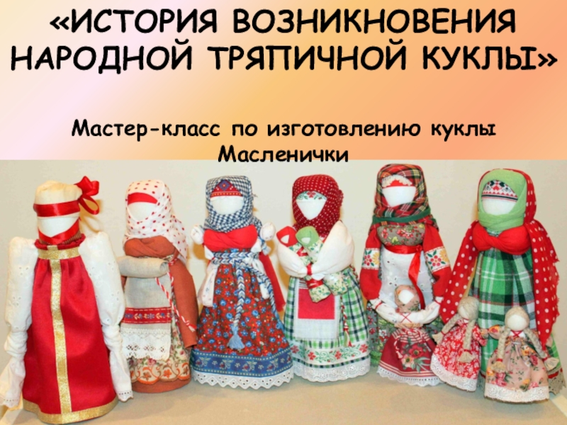 Слайд 1«ИСТОРИЯ ВОЗНИКНОВЕНИЯ НАРОДНОЙ ТРЯПИЧНОЙ КУКЛЫ»