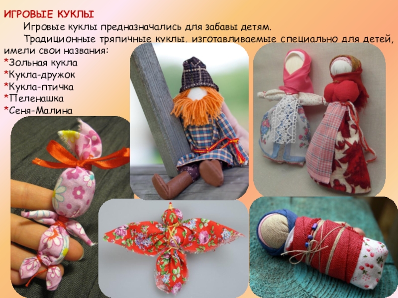 Слайд 4ИГРОВЫЕ КУКЛЫ