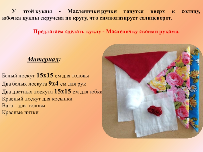 Слайд 8В старину тряпичную куклу - Масленичку делали в канун масленицы и хранили ее