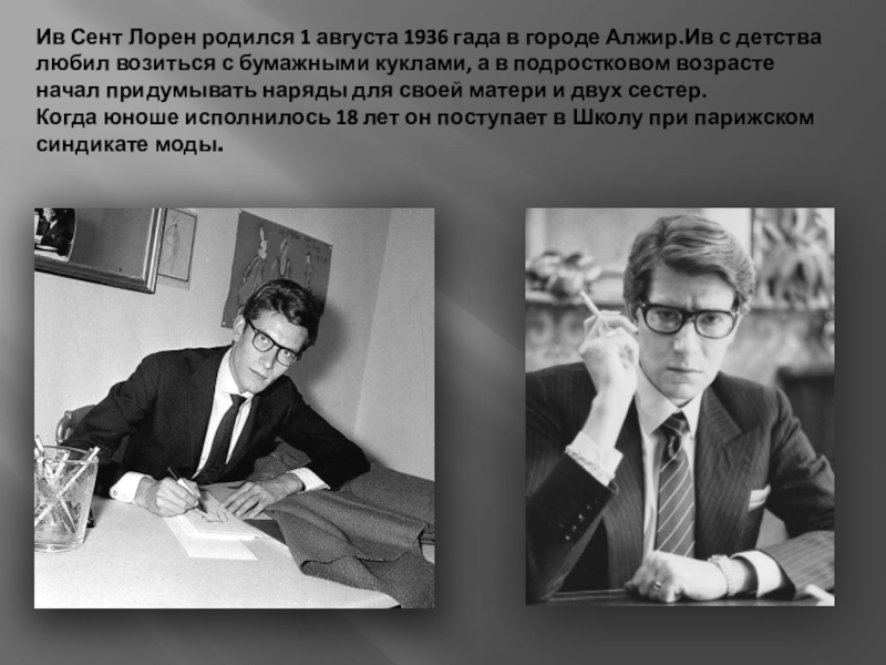 Презентация, доклад на тему Ив Сент Лорен - биография и путь становления