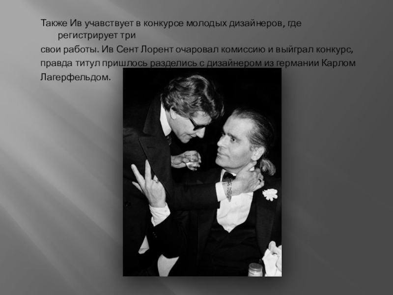 Ив Сент Лорент очаровал комиссию и выйграл конкурс,