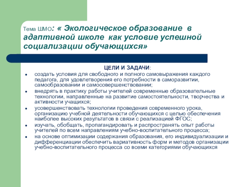 создать условия для свободного и полного самовыражения каждого педагога, для удовлетворения его потребности в саморазвитии, самообразовании и самосовершенствовании;