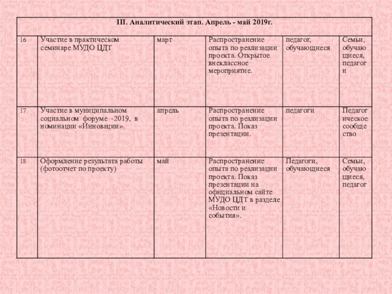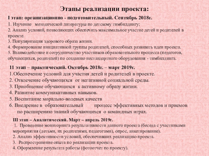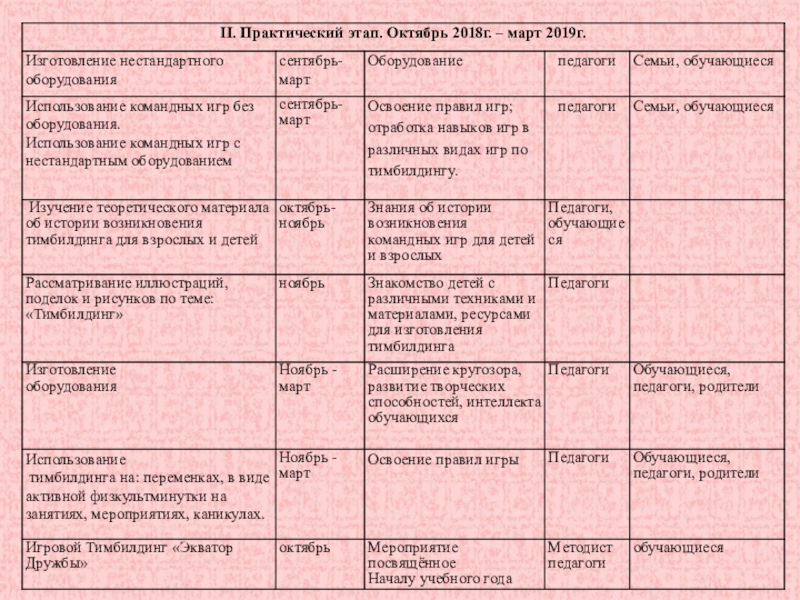 11 этап – практический. Октябрь 2018г. – март 2019г.