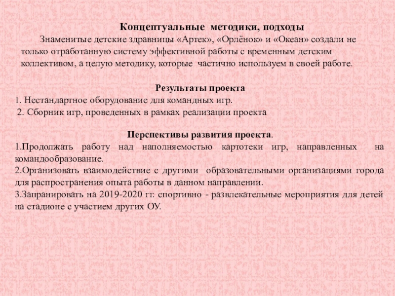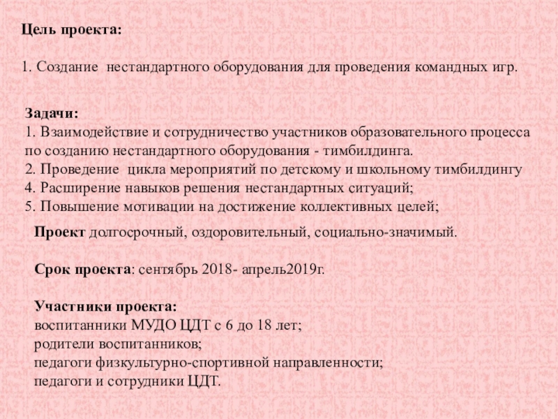 Проект долгосрочный, оздоровительный, социально-значимый.