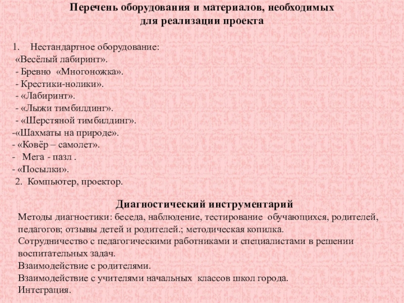 Методы диагностики: беседа, наблюдение, тестирование обучающихся, родителей, педагогов; отзывы детей и родителей.; методическая копилка.