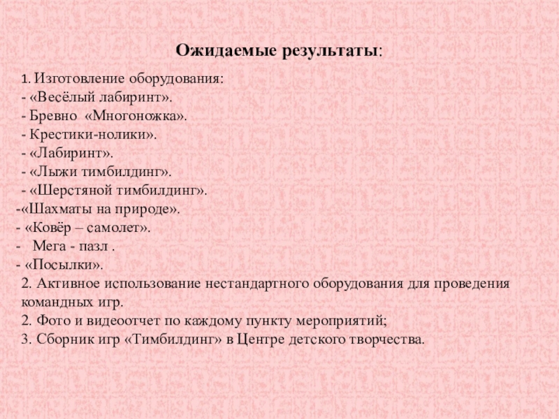 1. Взаимодействие и сотрудничество участников образовательного процесса по созданию нестандартного оборудования - тимбилдинга.