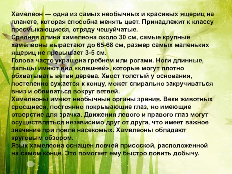 познакомить с интересными фактами из жизни хамелеонов;