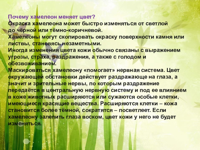 Слайд 6Почему хамелеон меняет цвет?
