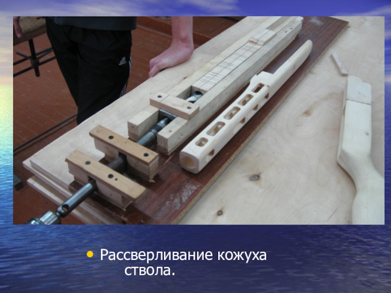 Слайд 4Рассверливание кожуха ствола.