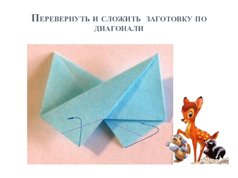 Слайд 2Перевернуть и сложить заготовку по диагонали