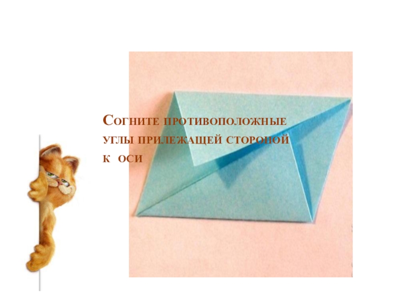 Слайд 1Согните противоположные углы прилежащей стороной к оси