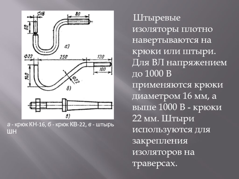 а - крюк КН-16, б - крюк КВ-22, в - штырь ШН