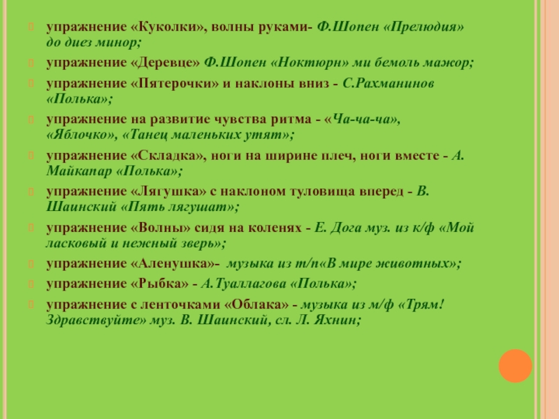 Слайд 5упражнение «Куколки», волны руками- Ф.Шопен «Прелюдия» до диез минор;