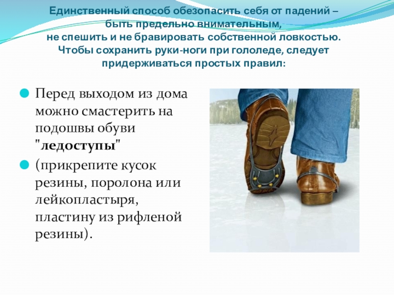 Чтобы сохранить руки-ноги при гололеде, следует придерживаться простых правил: