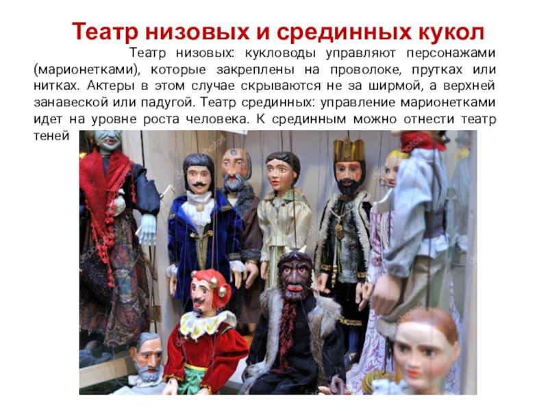 Слайд 15Театр низовых и срединных кукол