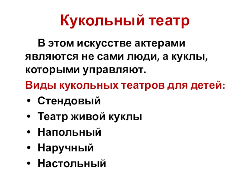 Виды кукольных театров для детей: