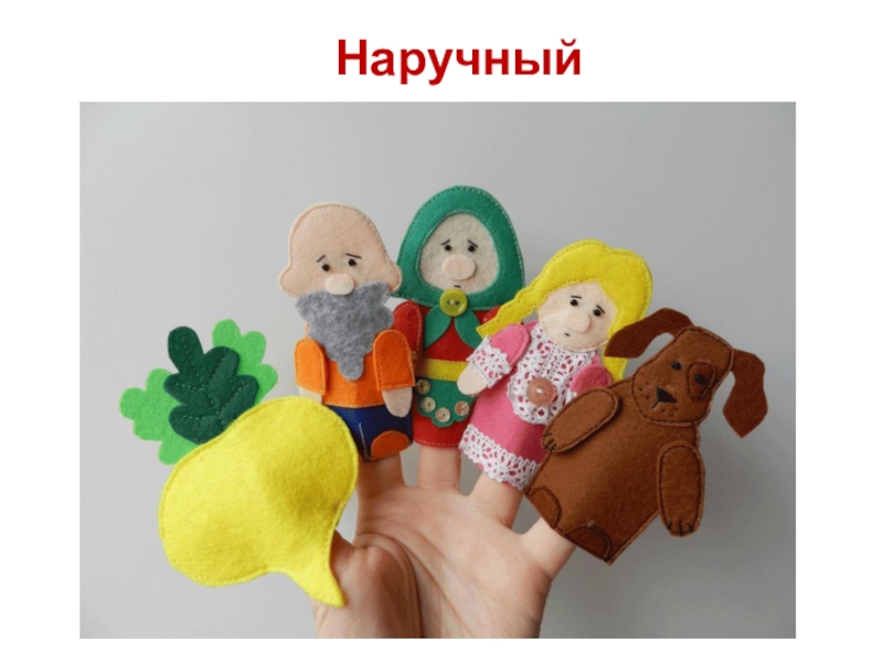 «Би-ба-бо». Игрушечные персонажи надеваются на руку кукловода. Используется высокая ширма, которая полностью скрывает человека.