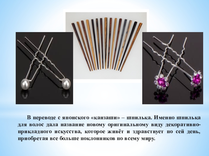 Слайд 3 В переводе с японского «канзаши» – шпилька. Именно