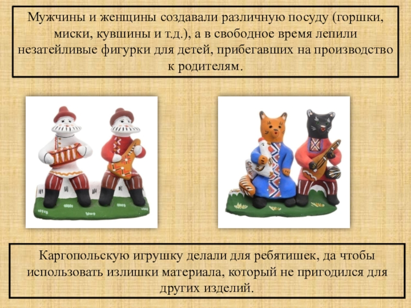 Каргопольскую игрушку делали для ребятишек, да чтобы использовать излишки материала, который не пригодился для других изделий.