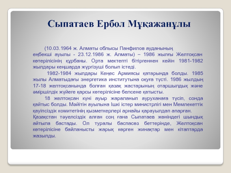Слайд 41 (10.03.1964 ж. Алматы облысы Панфилов ауданының