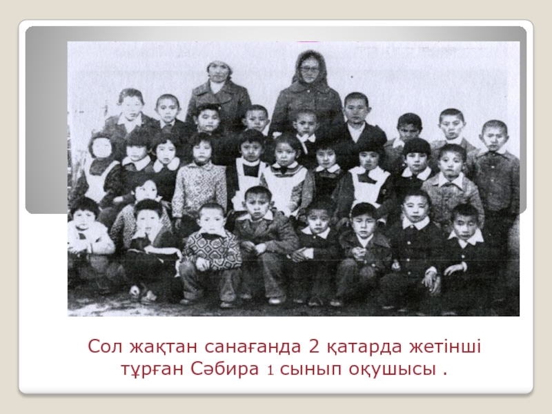 Сол жақтан санағанда 2 қатарда жетінші тұрған Сәбира 1 сынып оқушысы