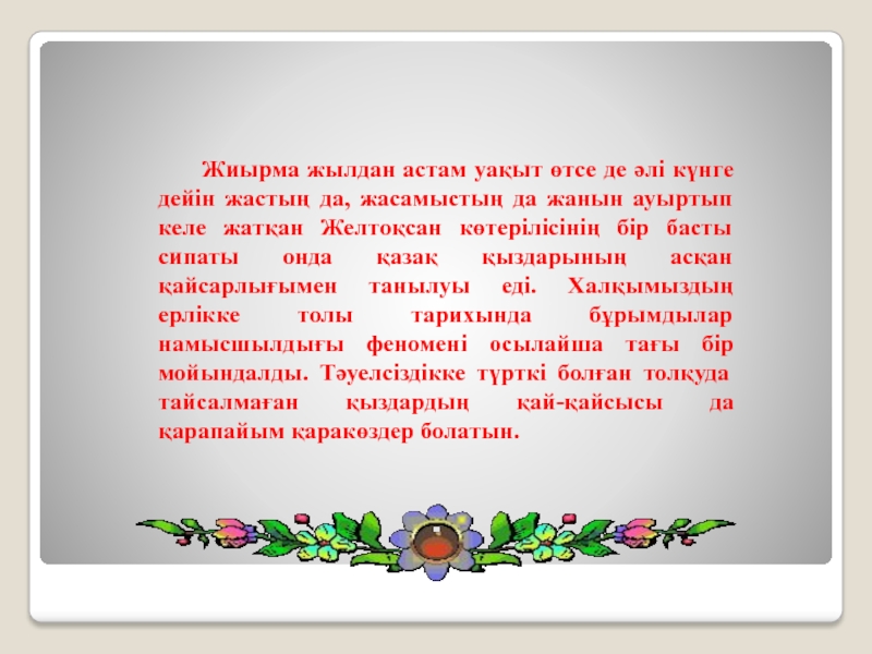 Слайд 42Тәуелсіздік рухы қаһарман қыздардың дауысымен жетті